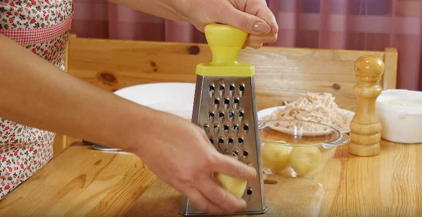 - Отваренную картошку положила на некоторое время в холодильник. После нахождения там, ее легче натирать на терке
