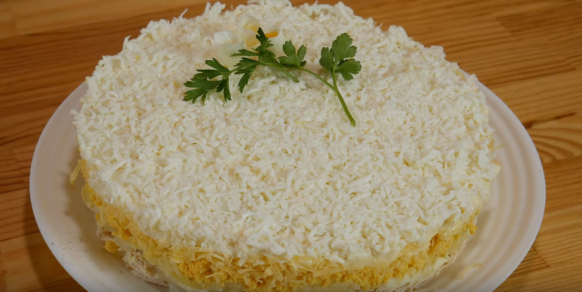 Как приготовить салат Невеста с копченой курицей и плавленным сыром