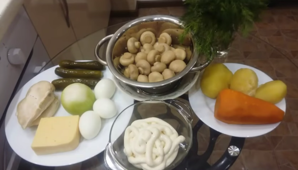 Бесподобный рецепт Невесты с грибами и куриной грудкой
