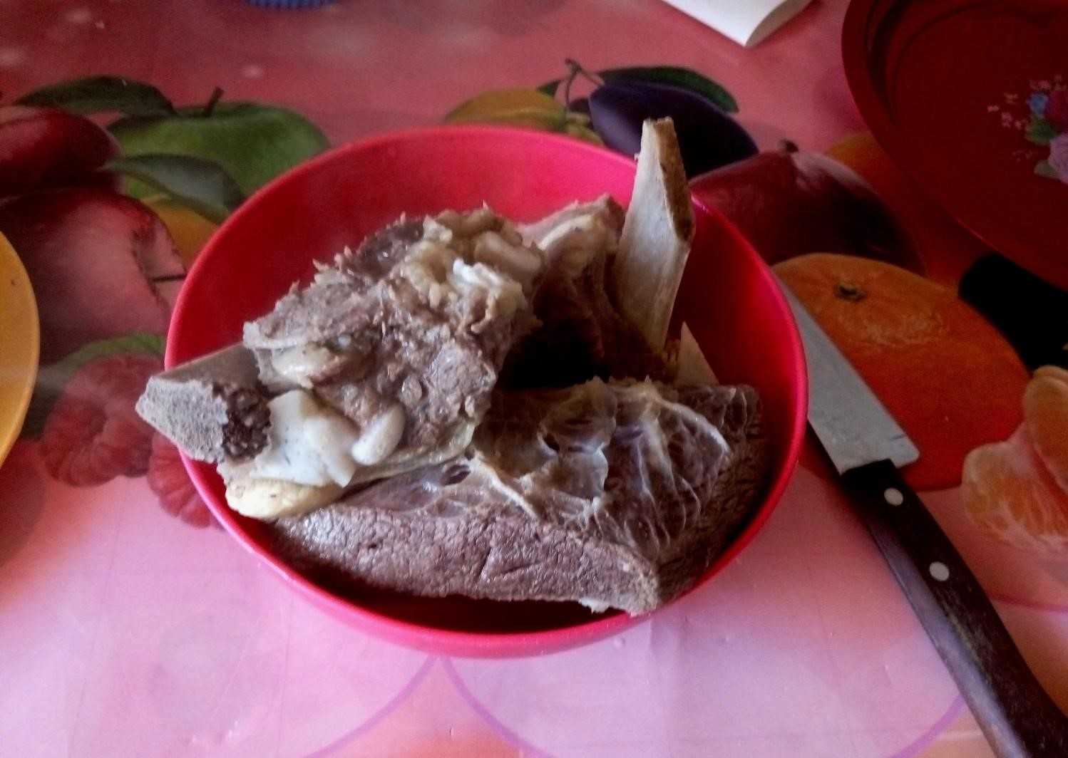 Остывшую говядину отделяем от кости так, как показано на фото.