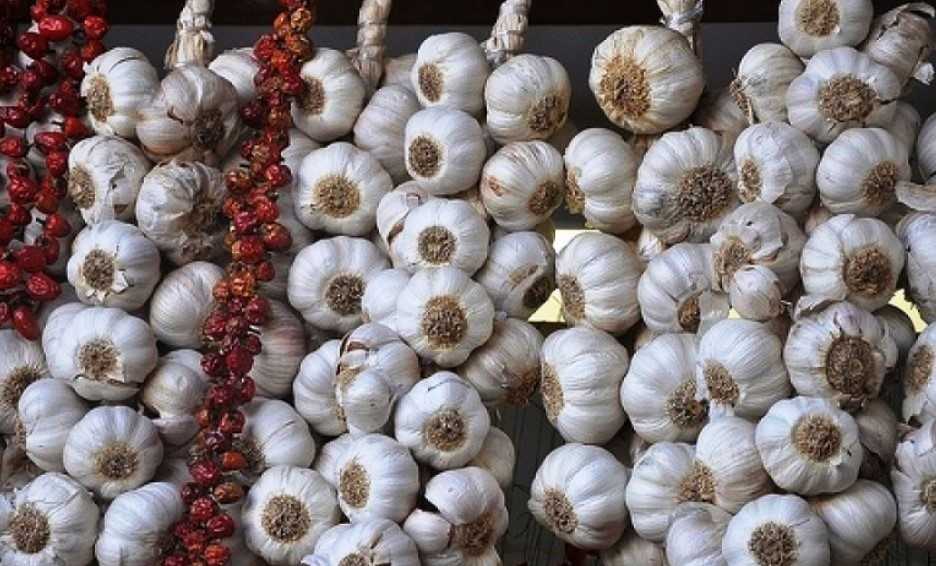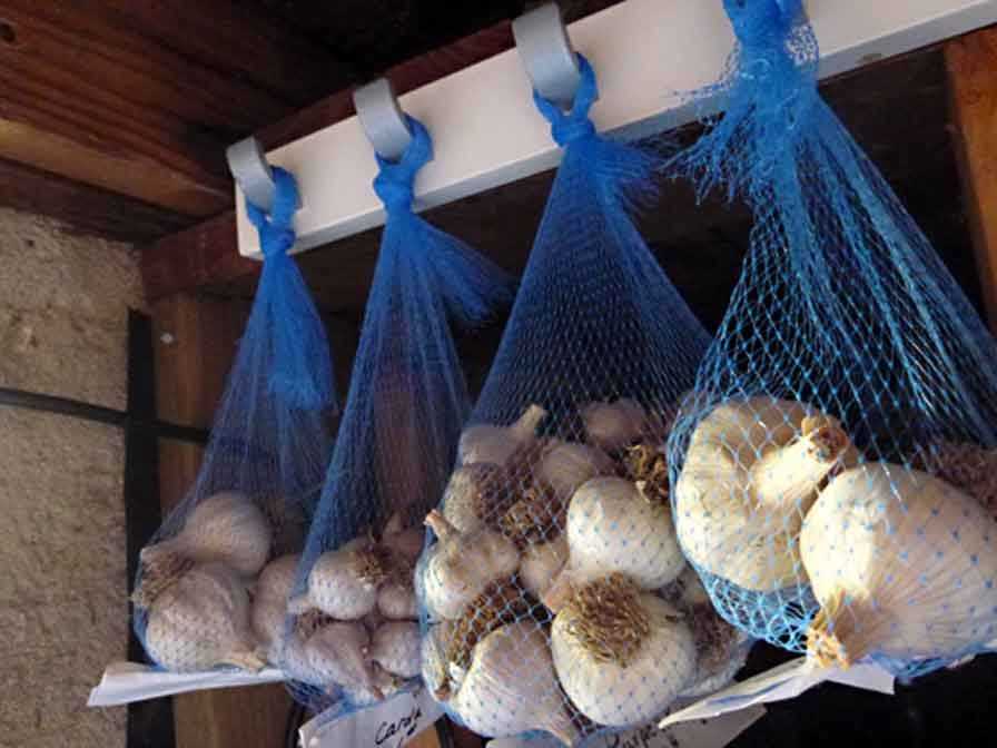 Необрезанный чеснок заплетают в косички и украшают ими стены кухни. Так же как и лук, в деревнях озимый чеснок хранят в капроновых колготках .