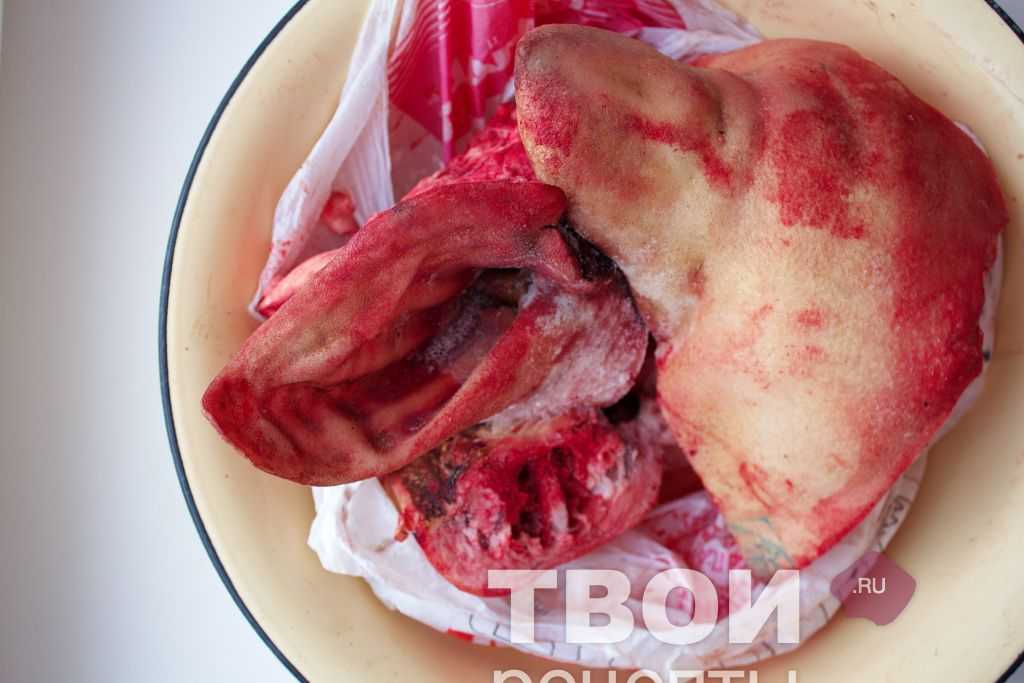 Создание сытного угощения на основе свиной головы возможно при соблюдении этапов, описанных ниже: