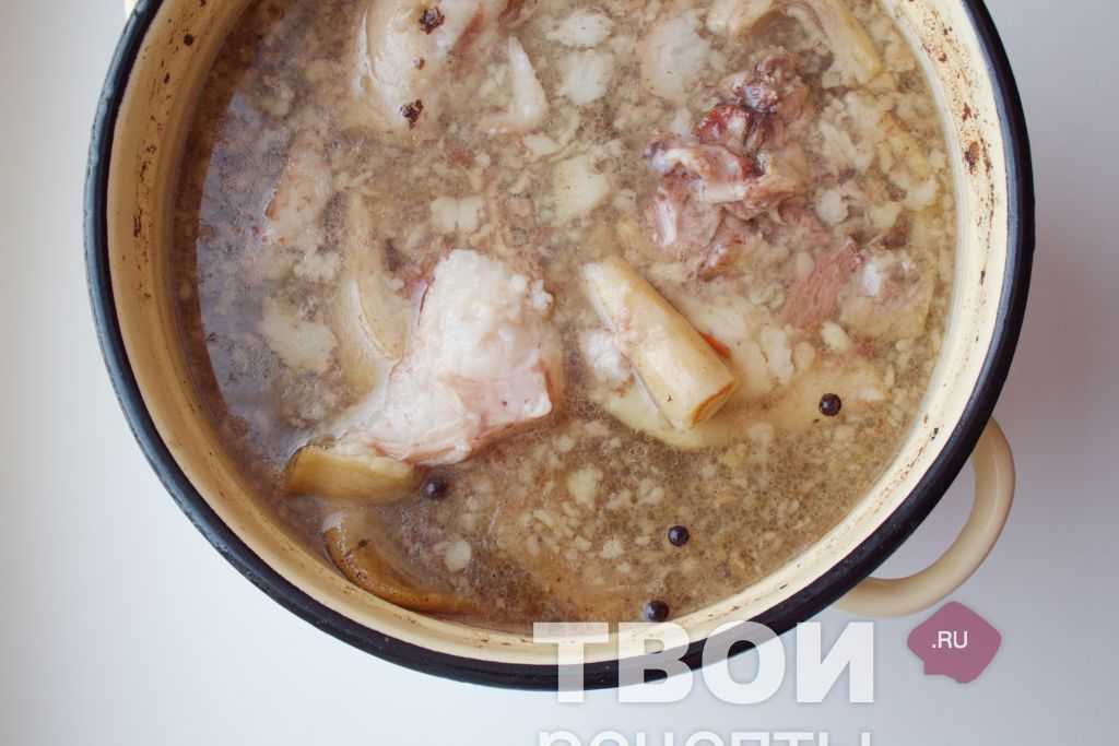 - По истечении 6 часов содержимое кастрюли следует вынуть, остудить и отделить мясо от костей.