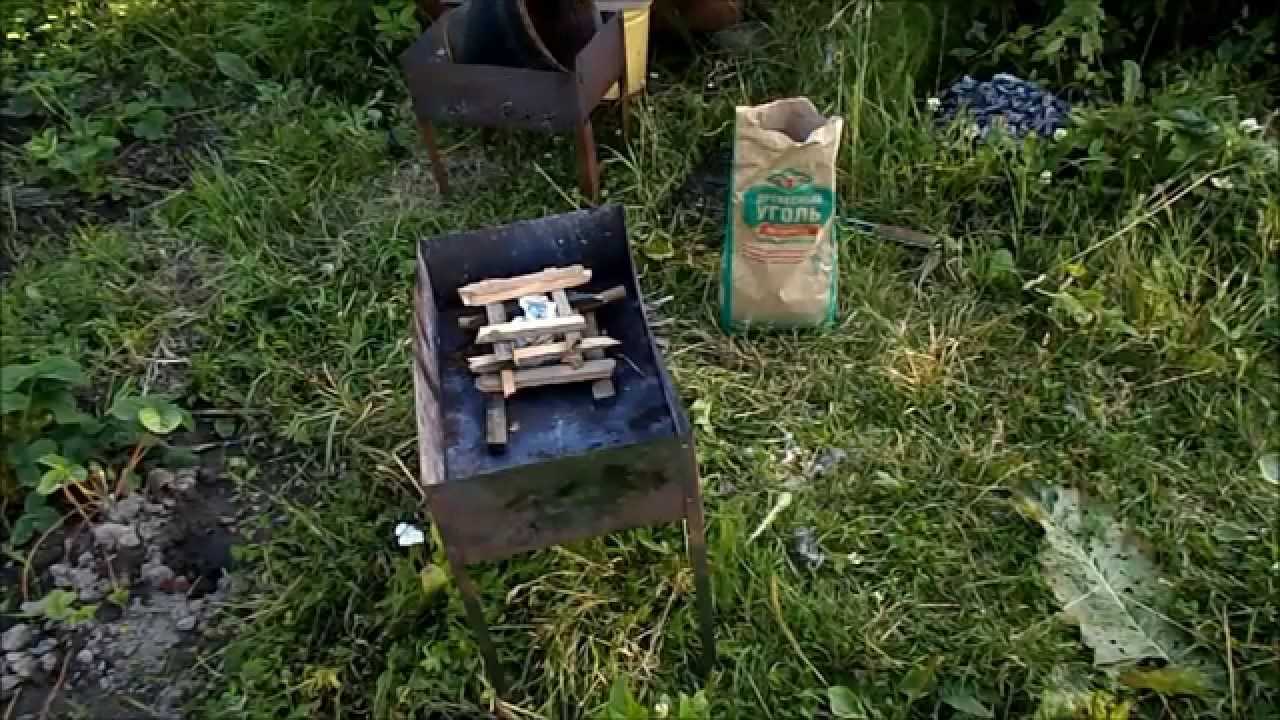 Разжигать угли или дрова в мангале можно при помощи жидкости для розжига, но даже такая техническая смесь далеко не всегда дает начало для приготовления. Сложите несколько сухих палочек, реек в форме колодца. В центр поместите комок бумаги и поднесите к вспомогательной постройке спичку. Как только колодец разгорится, начинайте подкладывать уголь или заготовленные дрова.