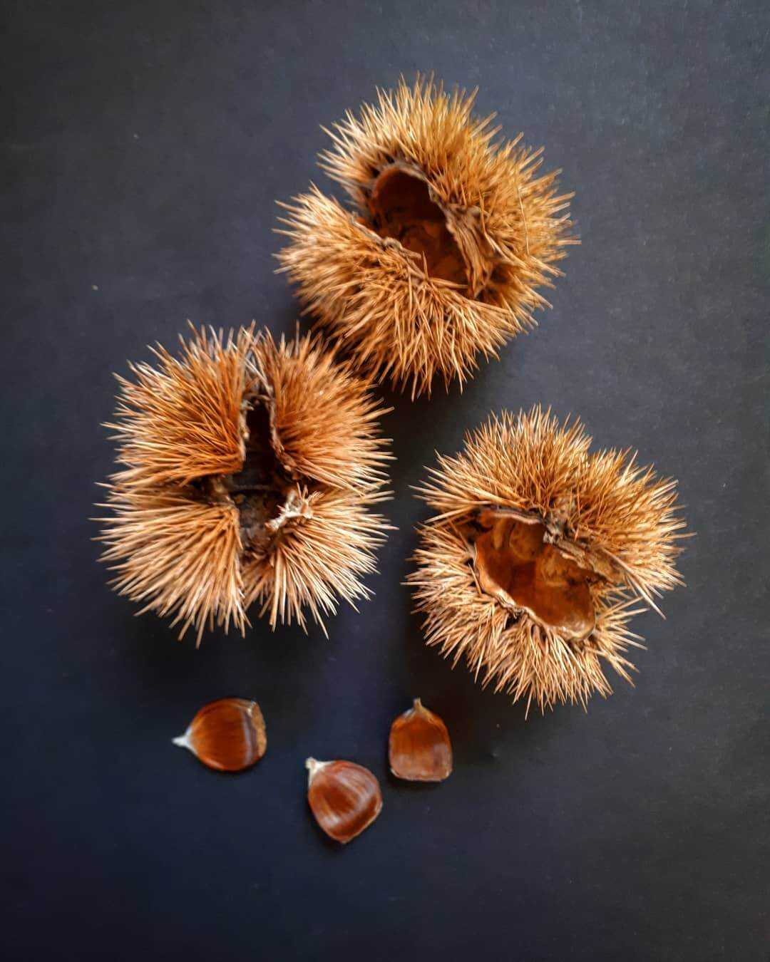 В Европе есть хорошая традиция — устраивать осенью пикники и печь каштаны на огне. Это лакомство продают и на улицах городов, где плоды готовят в открытых жаровнях. Их очищают и едят горячими, запивая виноградным соком, пивом или сидром. Главное — проткнуть скорлупу орехов перед запеканием, иначе каштаны взорвутся во время тепловой обработки. А еще каштаны варят и готовят на пару, добавляют в супы, соусы, салаты, запеканки и гарниры, начиняют ими курицу и рождественскую индейку. Если вы хотите сохранить каштаны до Рождества, их можно сварить, очистить и заморозить.