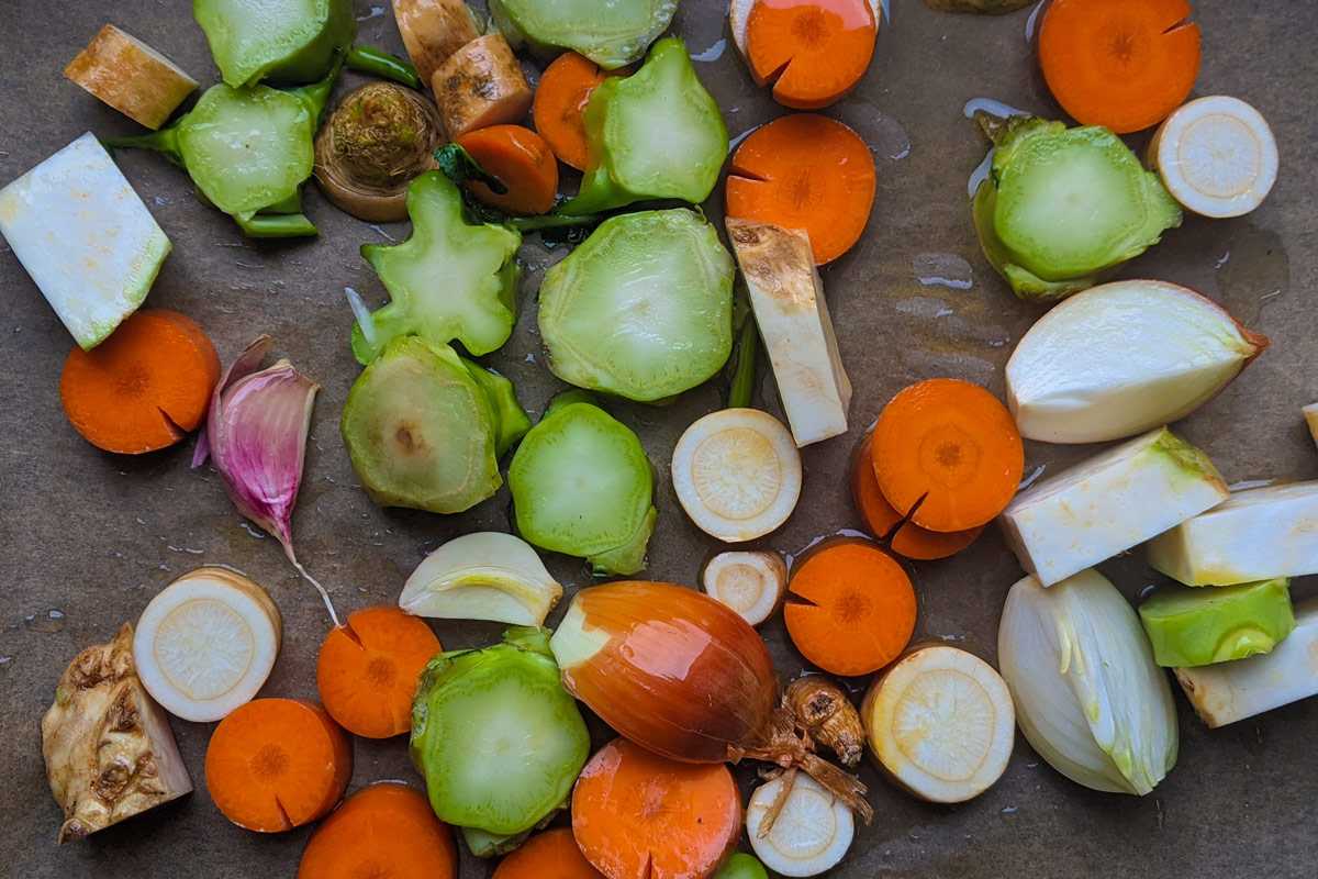 -обжаренные овощи позволят создать совершенно другой вид бульона, чем как если бы вы использовали овощи сырые;