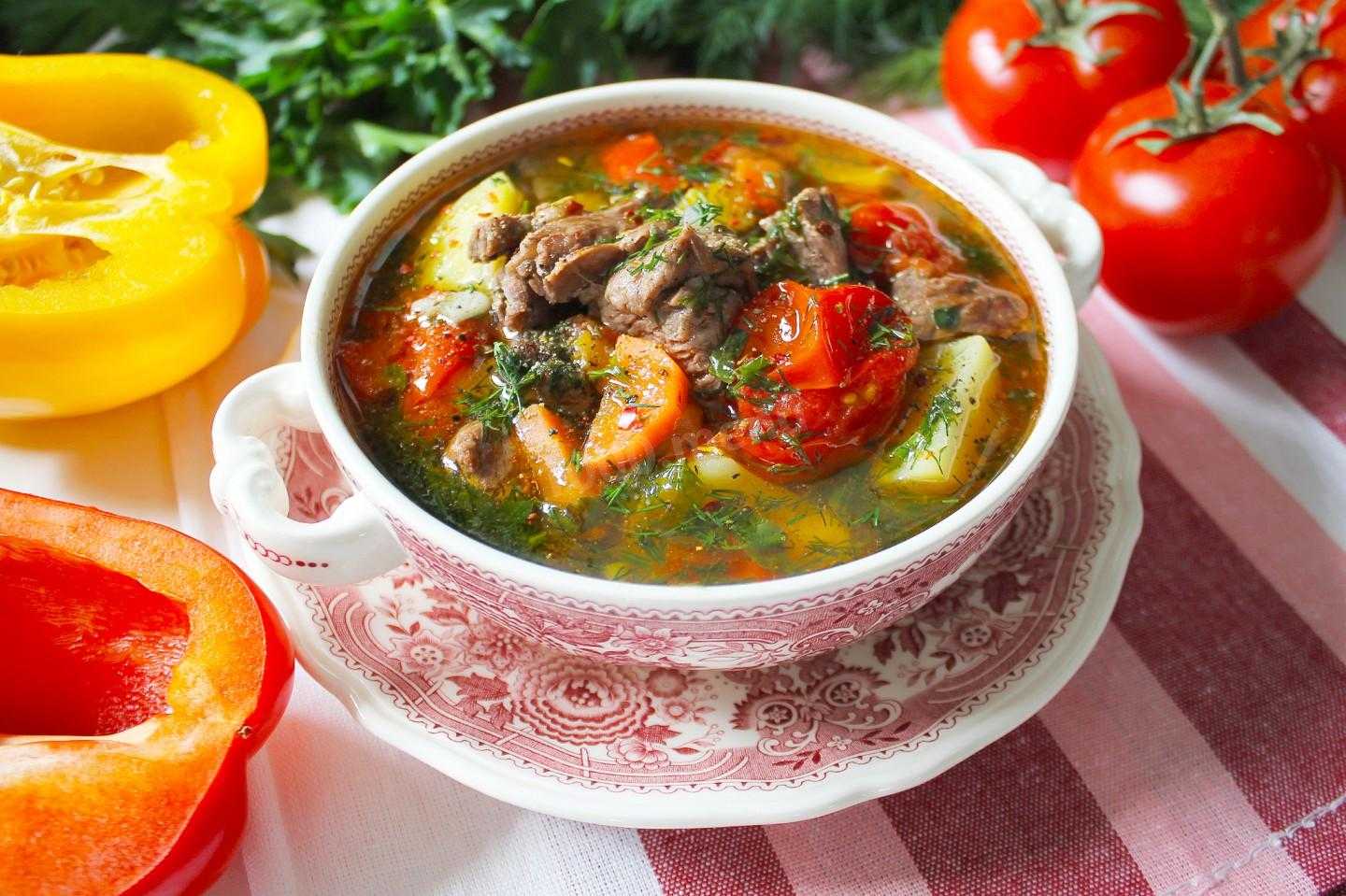 Помидор разрезается на крупные дольки, затем вместе с остальными овощами добавляется в бульон. В таком виде блюдо должно готовится не менее 40 мин.