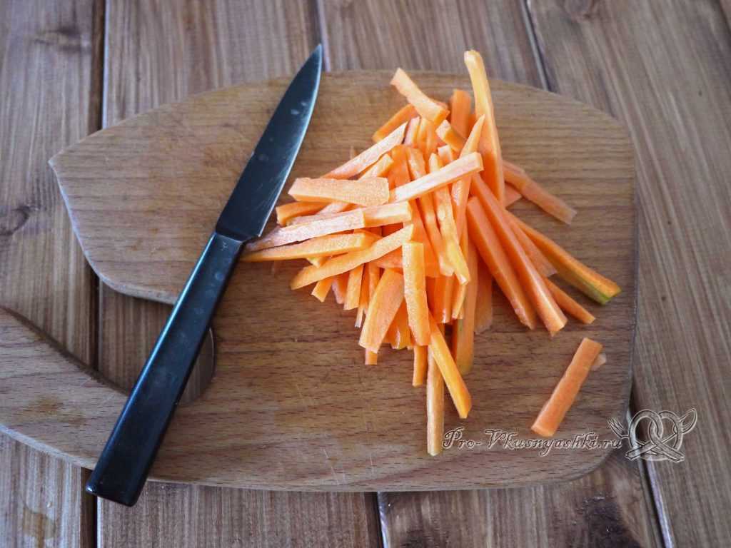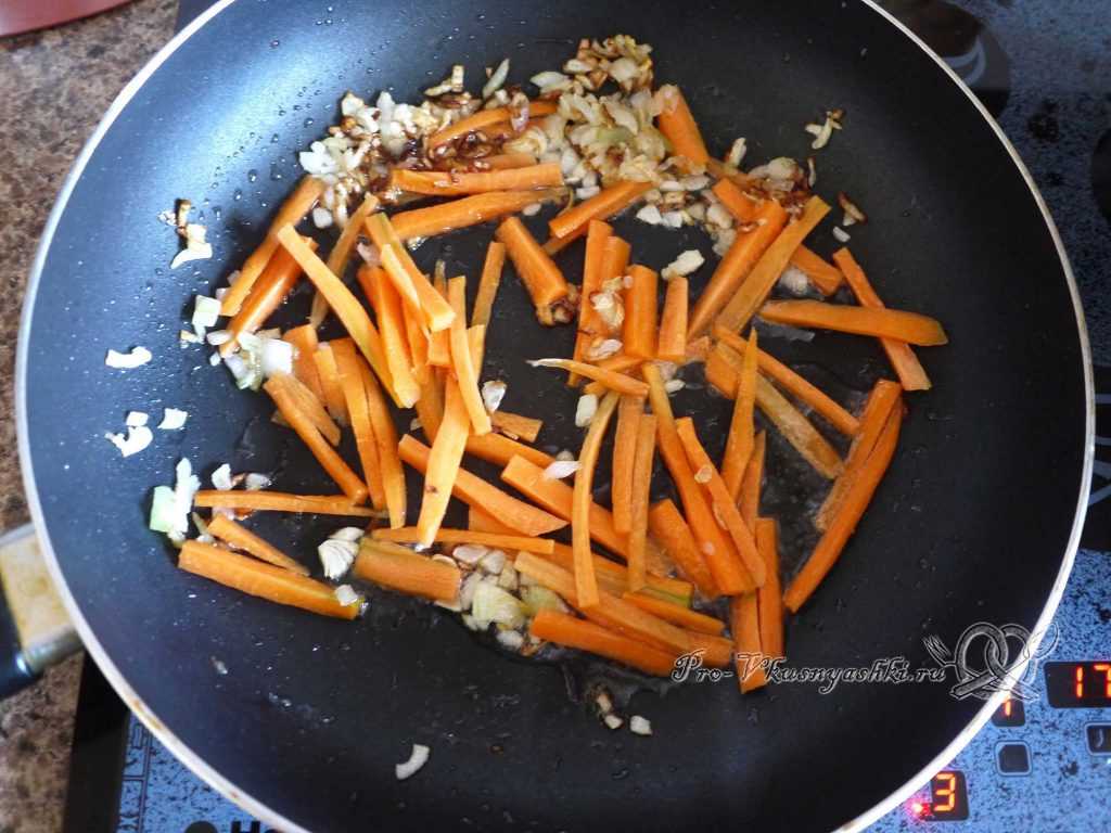 Затем добавляем к овощу морковь и обжариваем их вместе еще 2-3 мин на среднем огне.