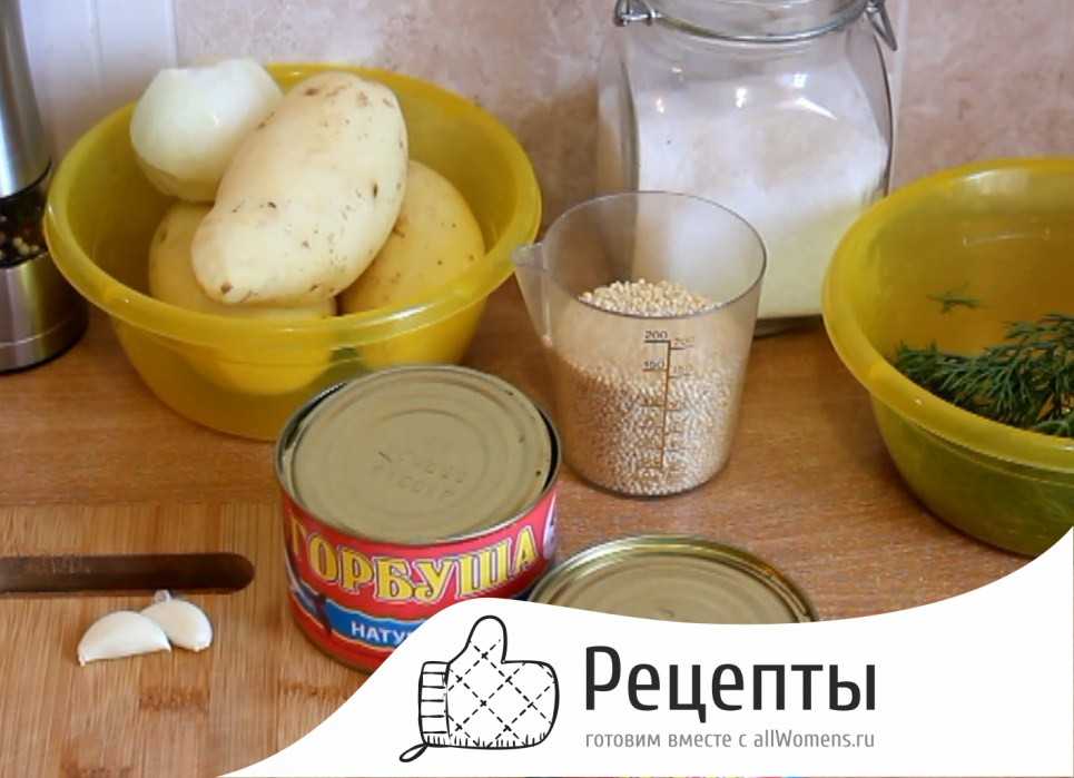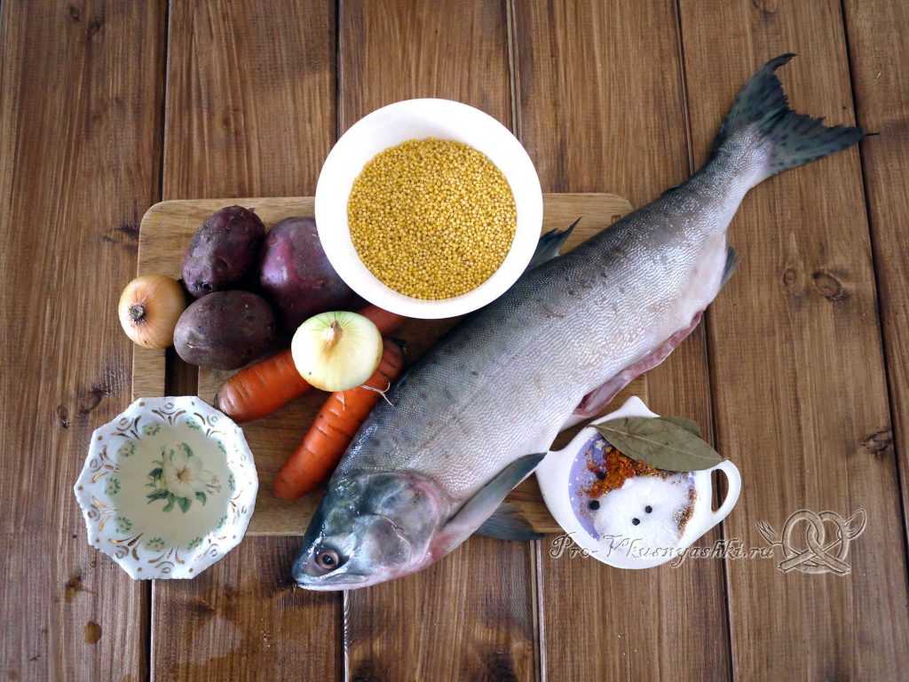 Подготовим ингредиенты. Охлажденную горбушу потрошим и промываем в холодной воде. Овощи очищаем от кожуры. Пшено при необходимости перебираем, удаляя примеси и испорченные экземпляры.