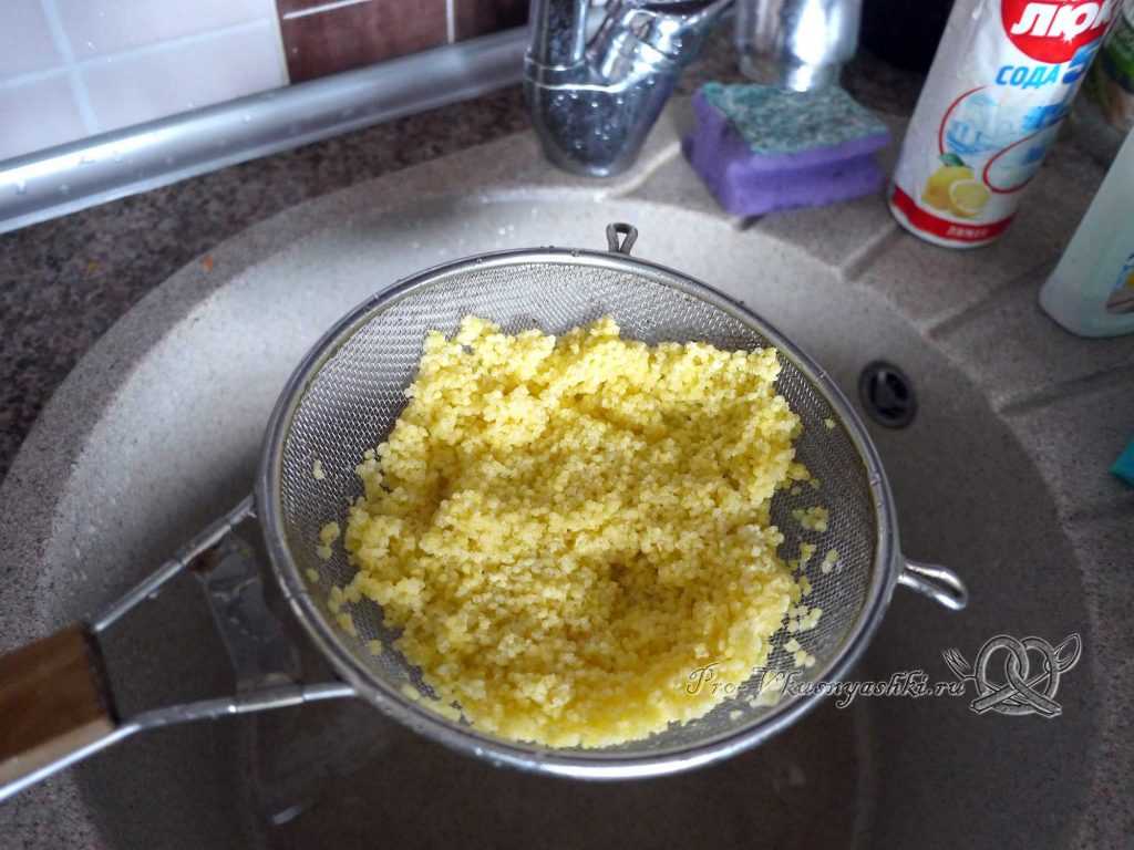 Затем сливаем с полуготовой каши жидкость и промываем крупу холодной водой. Таким образом, вся горечь злака перешла в воду и не придаст нашему супу неприятного оттенка.