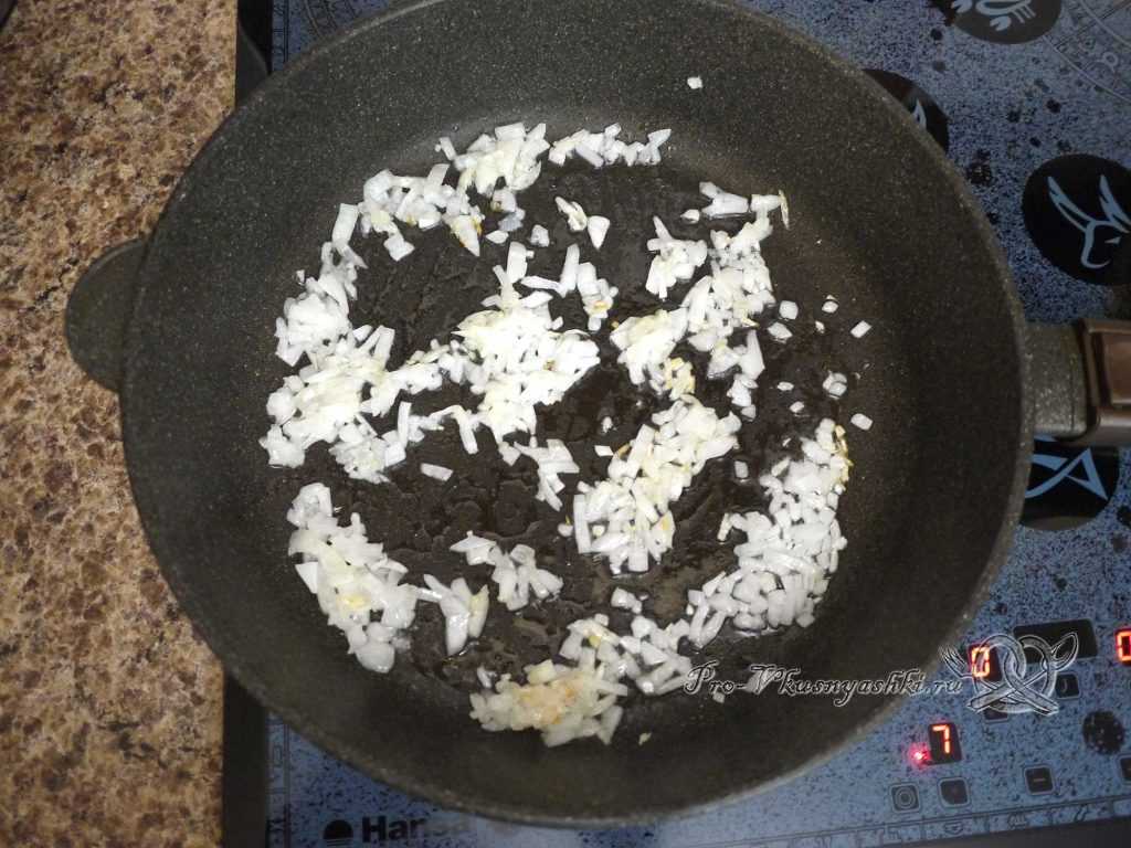 Обжариваем лук на раскаленной сковороде с маслом около 1-2 мин.