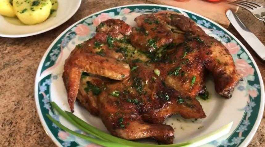 Курица (цыпленок) табака в духовке — сочная и хрустящая