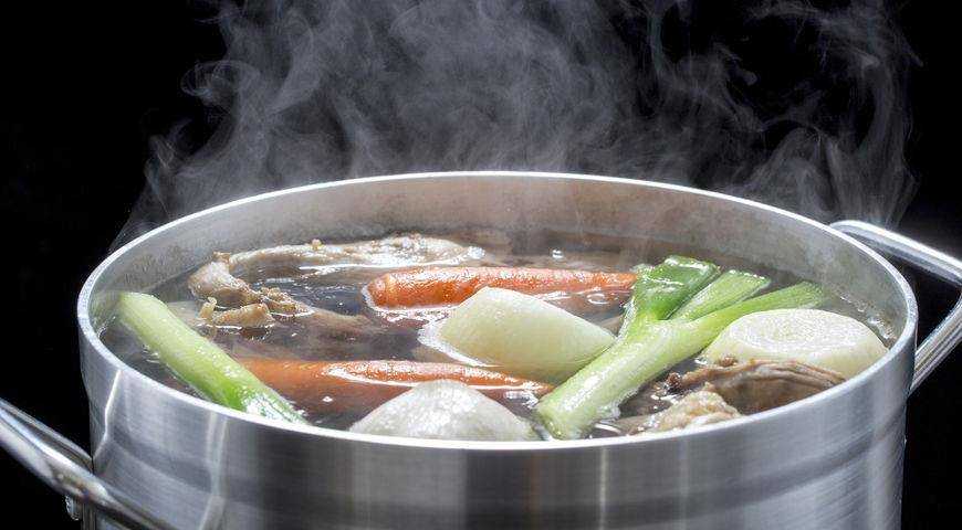 Единственный нюанс: в супах, которые предполагают медленный огонь, необходимо довести воду до кипения, затем подождать минутку-другую, вновь довести воду до кипения — и так до окончания варки.