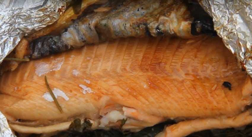 Лучше запеченной красной рыбы может быть только приготовленная на углях. Непередаваемый аромат костра и целый букет пряных трав делают это блюдо поистине незабываемым. Если нет возможности развести костёр, запекайте на электрогриле – это тоже очень вкусно!