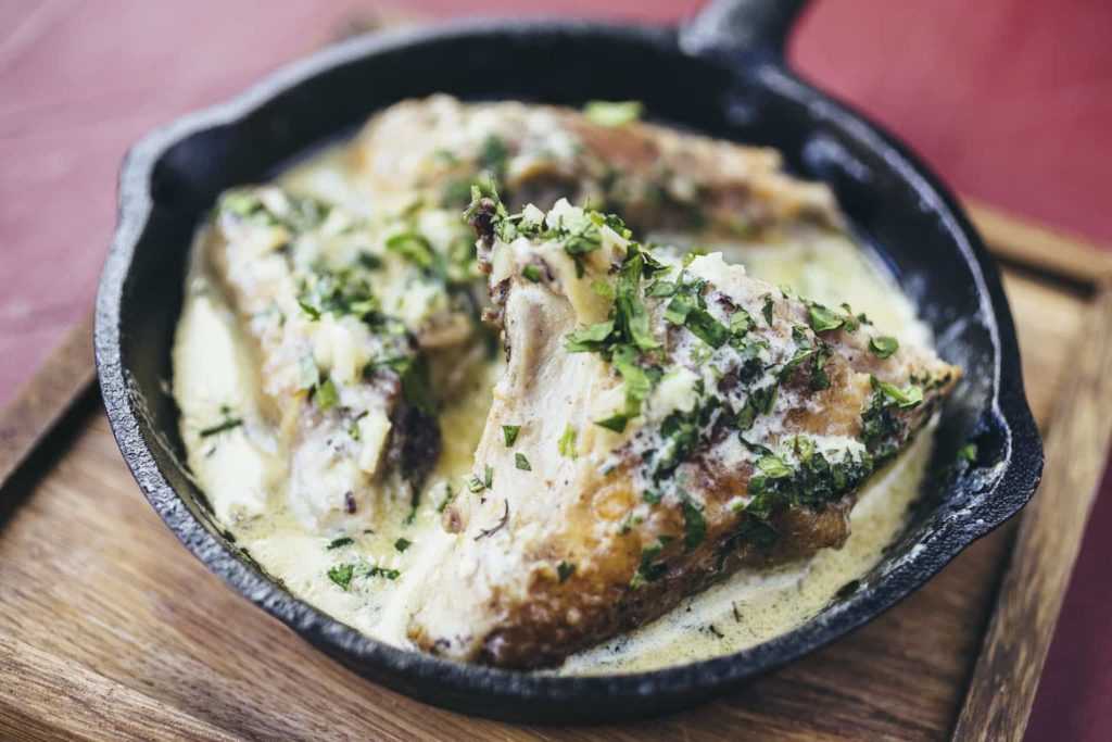 Идеальным компонентом в этом случае к основному блюду станет гарнир из зелени, простой отварной рис со сливочным маслом, пита из кукурузной муки и салат из рукколы и фризе.