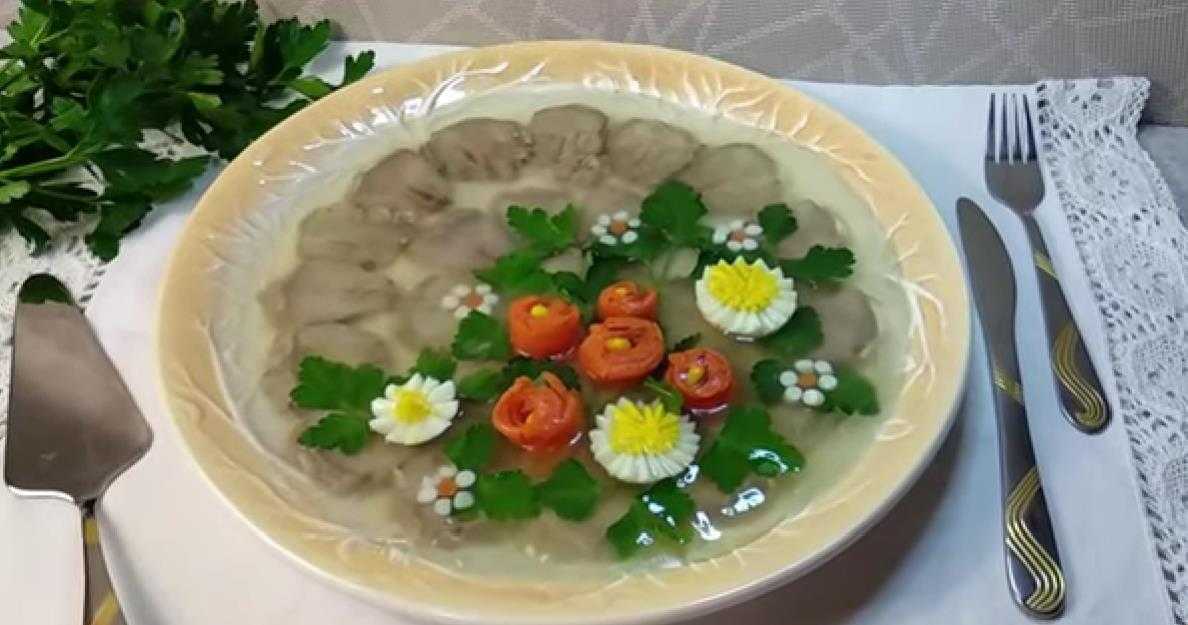 - Если добавить в бульон распущенный желатин, получится основа для заливного, в которое лягут разделанные ломти того же языка.