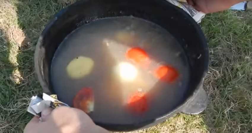 Суп по этому рецепту получается необыкновенное ароматный и наваристый. Запах костра так и манит скорее его попробовать А помидор, добавленный в конце готовки, добавит ухе лёгкую приятную кислинку и привлекательный цвет.