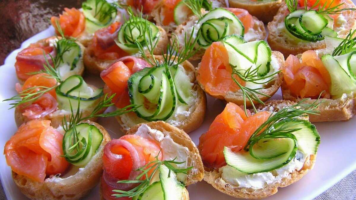 Крекеры с красной рыбой и огурцом к праздничному столу